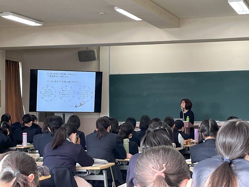 来年には、学年の多くの生徒が18歳(主権者)となることをふまえ、本学卒業生で元弁護士の黒澤いつきさんが、憲法や人権、政治参加に関するお話をしてくださいました。