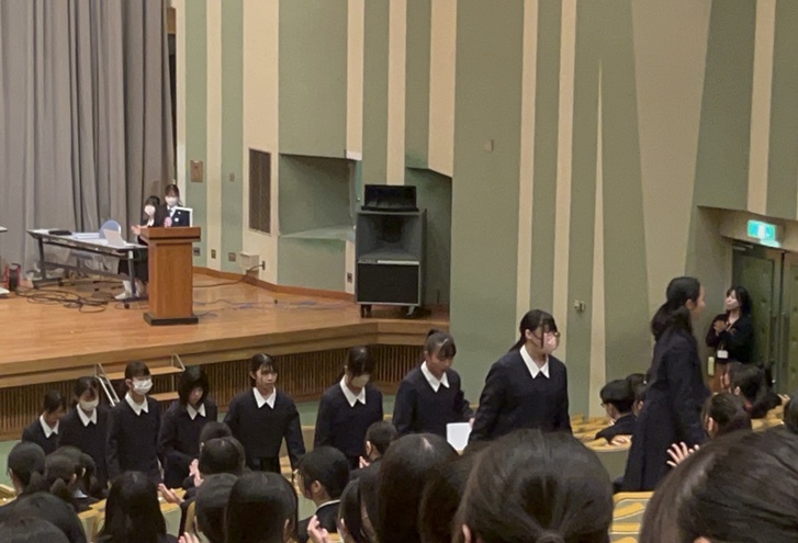 歓迎会の最後には、中学1年生と高校1年生の代表生徒からお礼の言葉がありました。