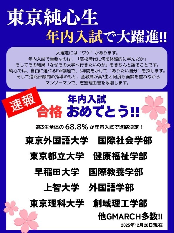 2026年度大学入試 年内入試合格状況