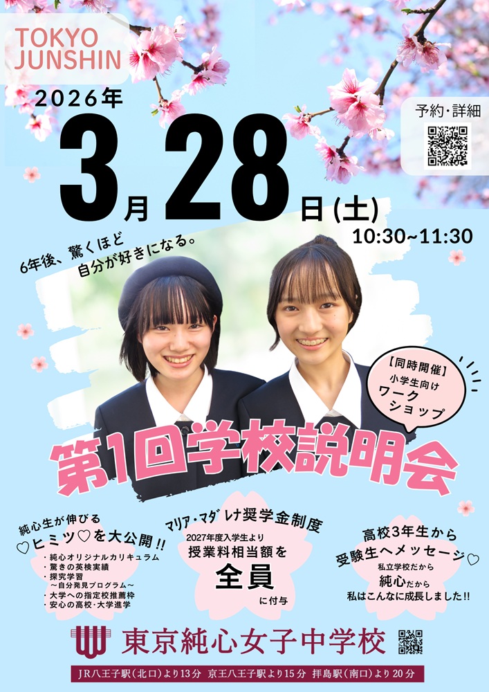 3/28(土)に開催される東京純心女子中学校第1回学校説明会のプログラムが決定いたしました!