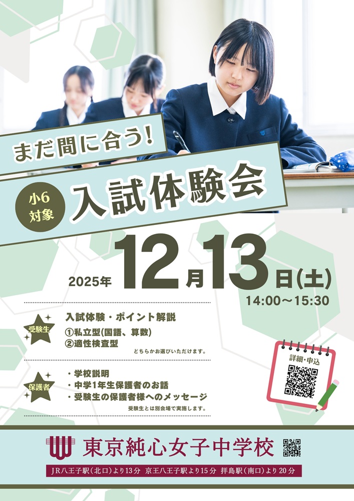 12/13(土)に開催される東京純心女子中学校 入試体験会のプログラムが決定いたしました!