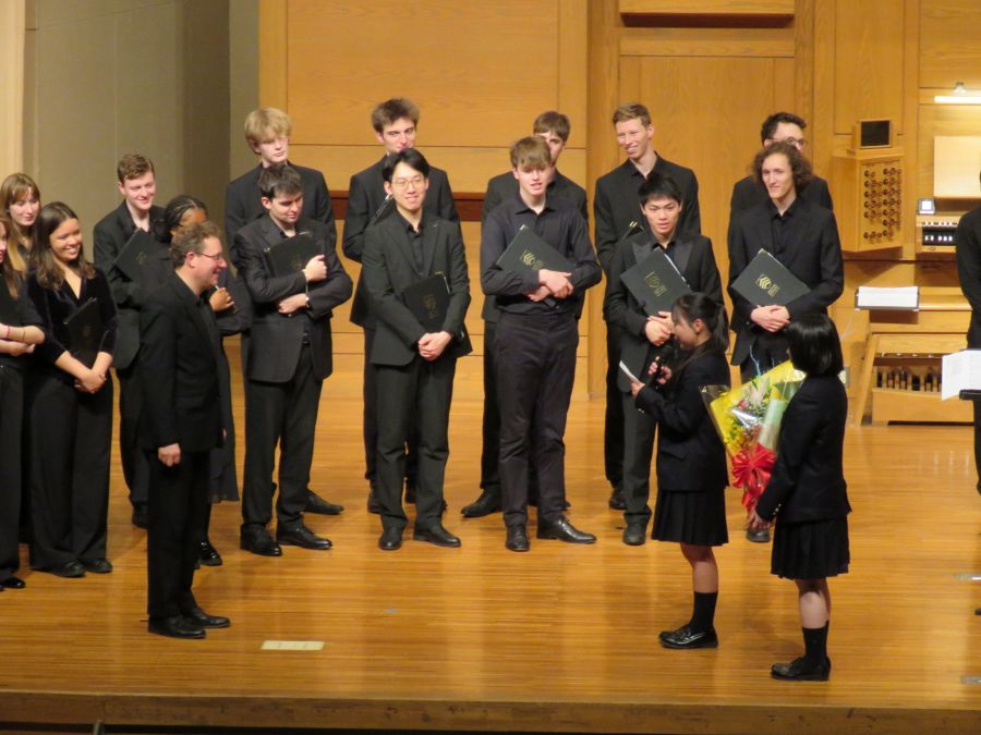 初の来日ツアー、全国7か所のうちの1か所として、パイプオルガンを所有する、東京純心女子学園の江角記念講堂が選ばれました。東京純心では昼の部は「芸術鑑賞会」として中高生が鑑賞し、夜の部では一般の方への公開公演として、多くのお客様にご来場いただきました。
