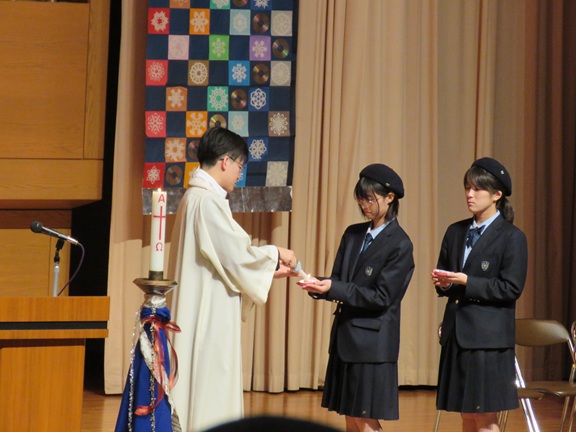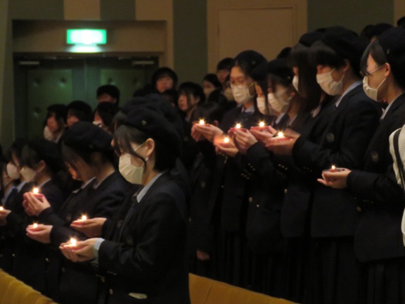 第1部では、クリスマスにちなんだ聖書のことばや神父様のお話を聞く、聖歌を歌う、高校3年生によるキャンドルサービスなどが行われ、心静かな祈りの時間となりました。