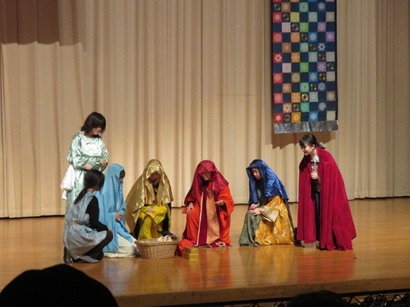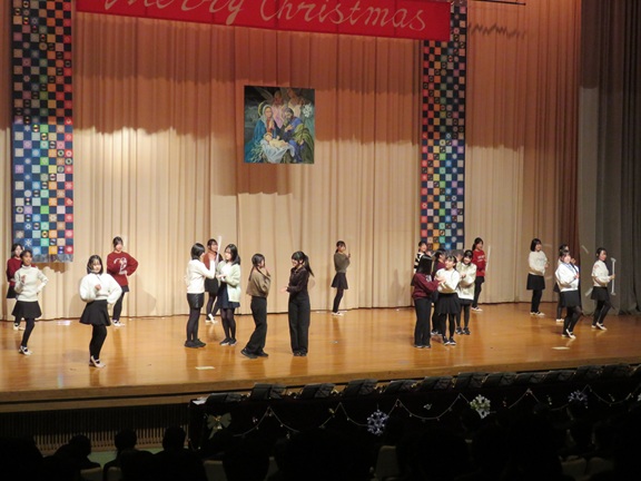 第2部は、バトン&ダンス部のスペシャルパフォーマンスから始まり、FYM「ハンドベルクワイア」によるハンドベルの演奏や、クリスマス会のために特別に結成された「劇団みこころ」によるクリスマス劇の上演など、イエス・キリストの誕生のよろこびを噛みしめる、ワクワクするプログラムとなりました!