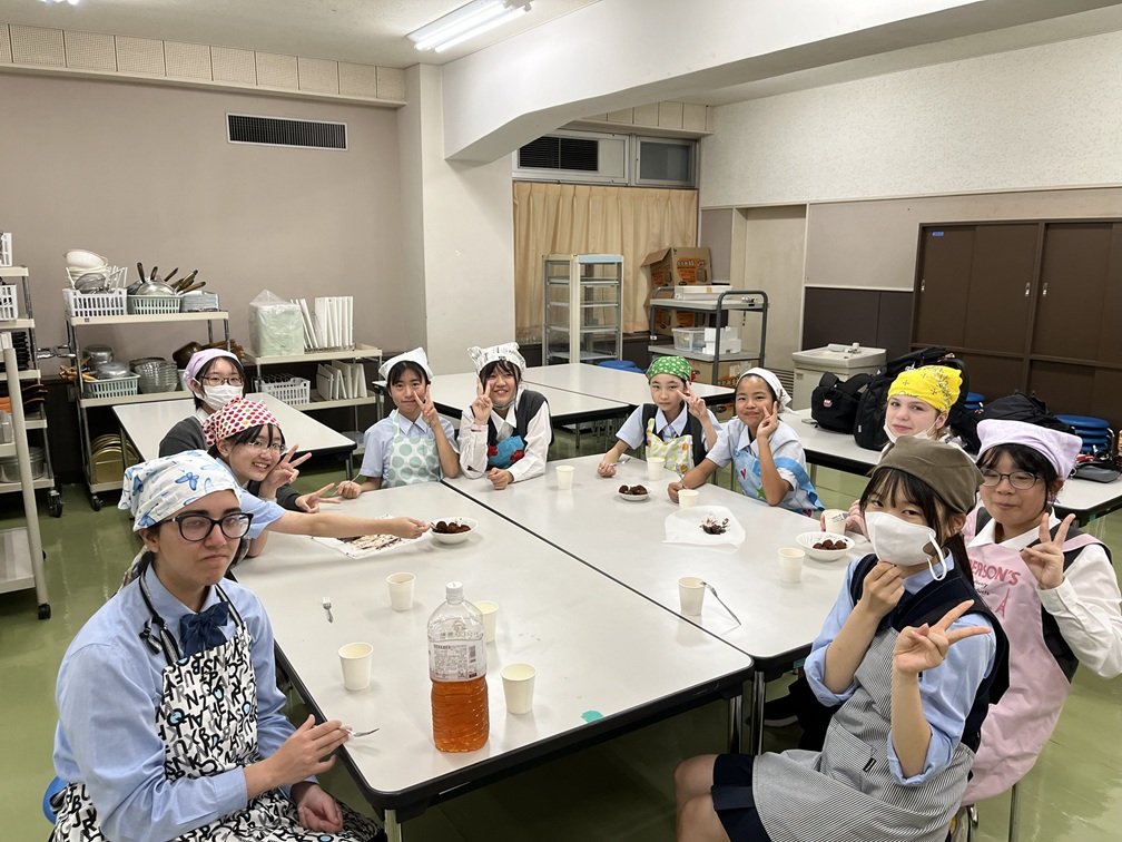家庭科部では、姉妹校からの留学生の2人を招いて、お菓子作りをしました。