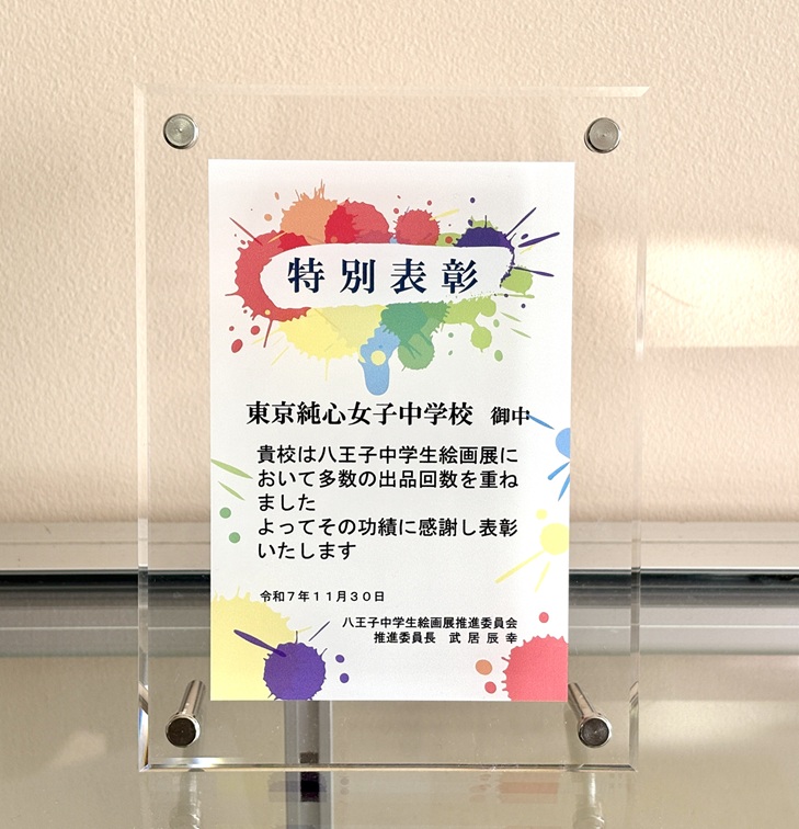 先日八王子市学園都市ギャラリーにて、第15回八王子市中学生絵画展が開かれ、純心からは14点出品しました。