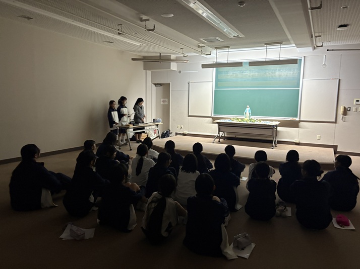 夜は厳かに「感謝のつどい」をおこない、心1つに。マリア様の前でみんなで写真をとりました。