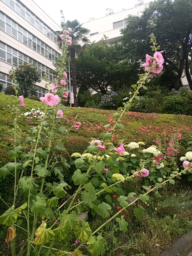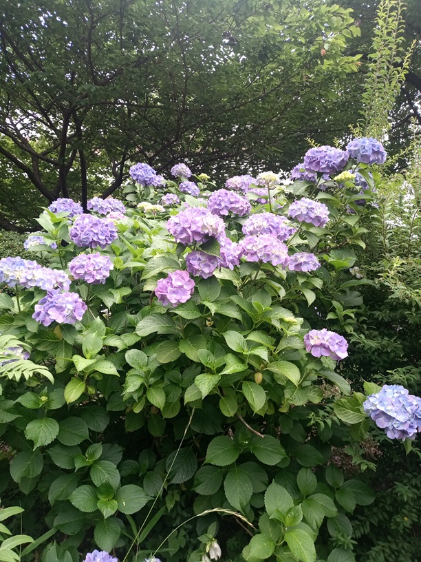 夏は紫陽花とタチアオイです!紫陽花は道路に沿うように植えられています。タチアオイは池のすぐ近くで咲いています。どちらも夏を感じる生命力で、瑞々しさがありました。