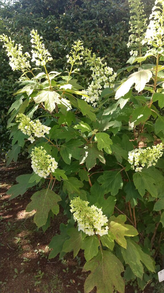 聖堂の裏に、カシワバ アジサイ(柏葉紫陽花)。